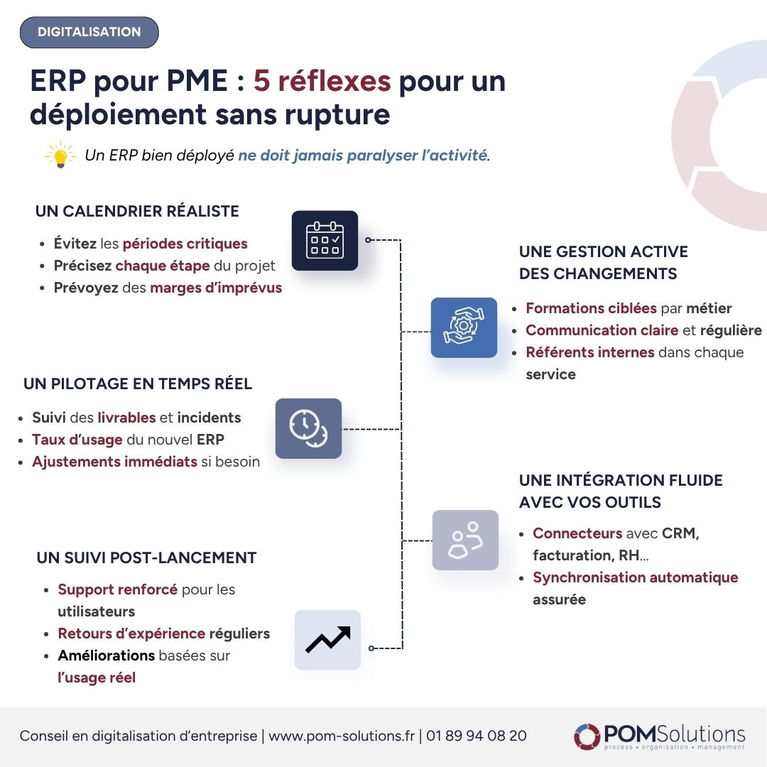 À ce stade, il est pertinent de rappeler que ces trois piliers sont également au cœur de toute transformation numérique d’une PME, et qu’ils conditionnent largement la réussite d’un ERP.